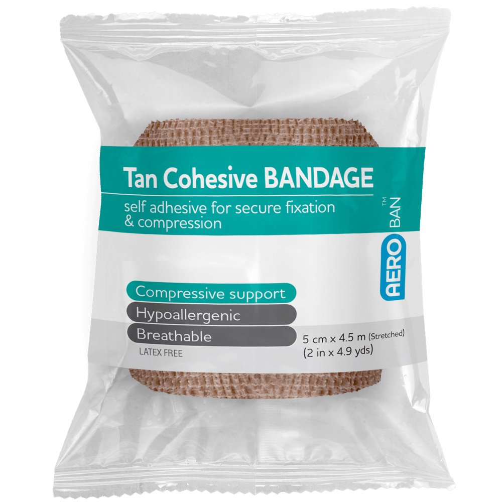 AEROBAN Tan Cohesive Bandages are a premium quality bandage with the unique ability to stick to itself but not to skin. Available in a tan colour for discrete application.