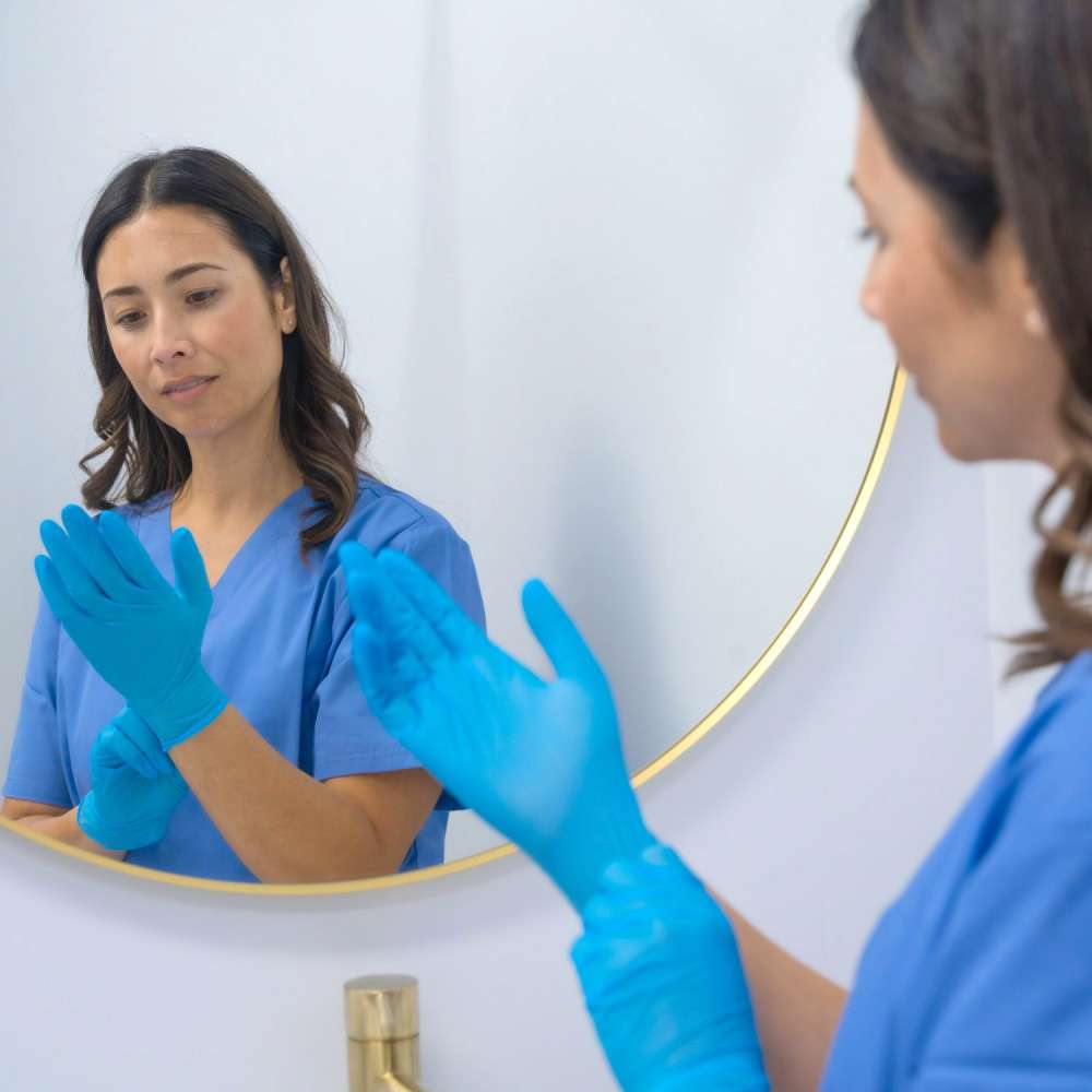 The gloves are made from nitrile, a durable and puncture-resistant material that provides excellent flexibility and strength. This makes them ideal for use in a variety of settings, including medical, dental, and first aid.