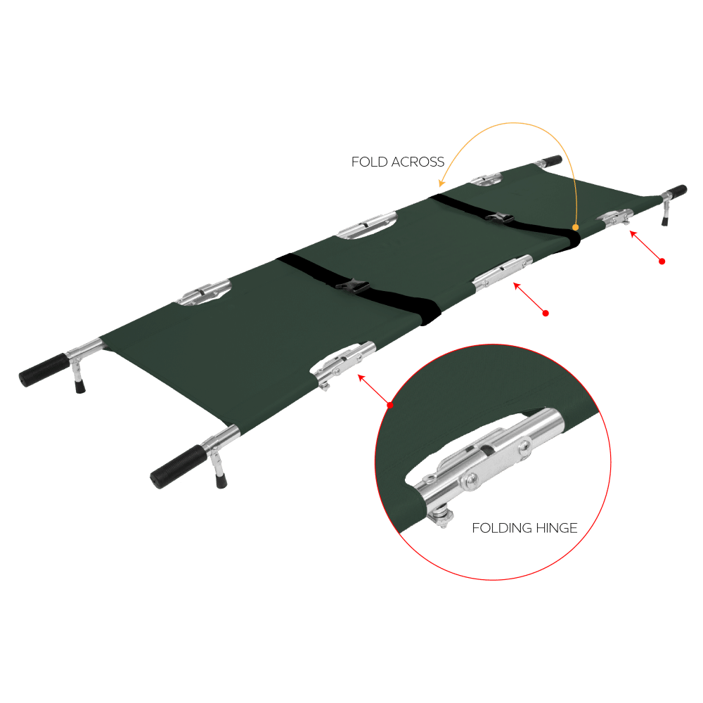 A device designed for transporting the patient from an emergency site which is not readily accessible for standard ambulance stretchers. This can be, e.g. mountain or marine rescue, or difficult indoor situations, e.g. narrow corridors or extremely steep stairways. It is designed to be lightweight, simple in operation and easily transported, e.g. ideally by one or two persons. The patient is often strapped to the stretcher to keep them secure during vertical lifts.