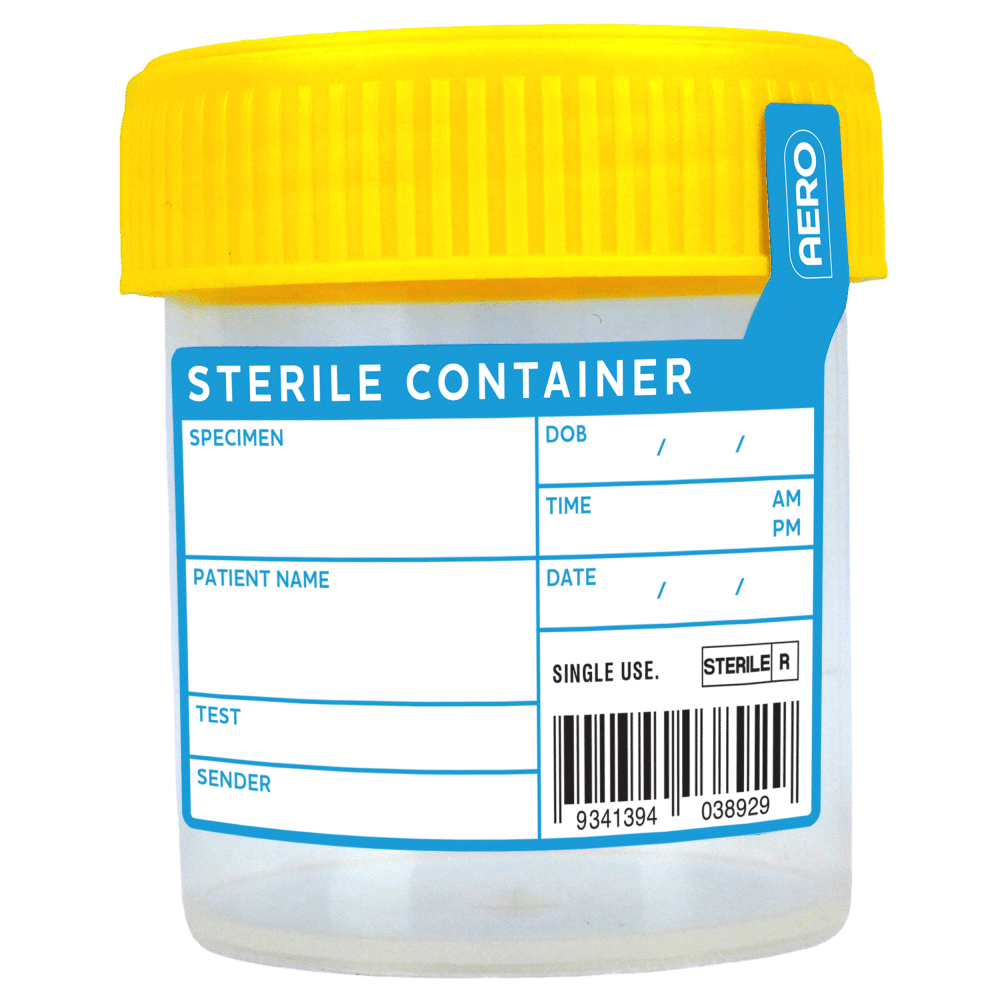 The AeroSuppliesâ„¢ Sterile Specimen Containers are designed for the safe collection, secure storage, and transport of biological specimens such as urine, sputum, or other samples. Each jar features clear, graduated markings for accurate measurement and a secure, leak-proof screw cap to prevent contamination and spillage. Manufactured from non-toxic, BPA-free polypropylene and individually sterilised for hygienic, single-use application.