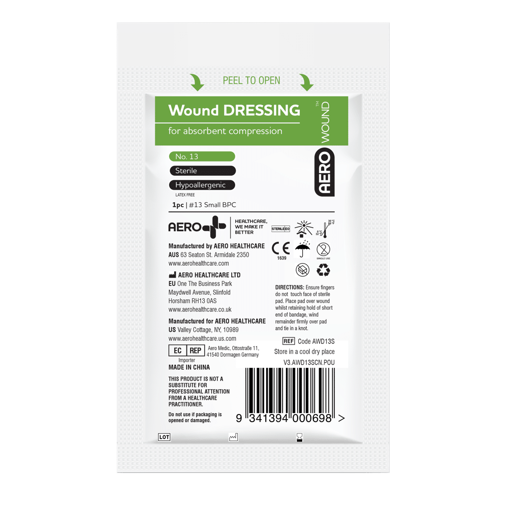 The AeroWound Wound Dressings are a general purpose wound dressing for use in preventing infection and controlling bleeding. Available in sizes to suit wounds from finger injuries to large wounds.