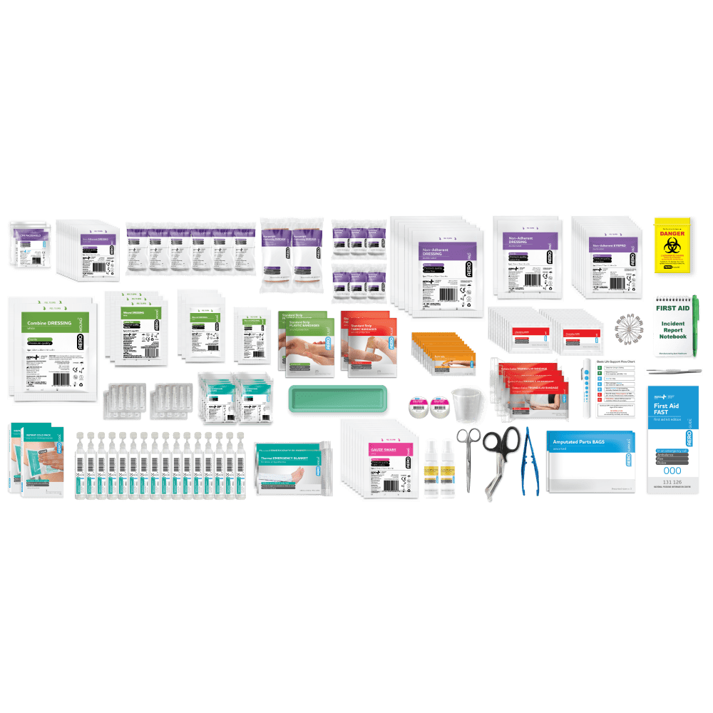 This kit range comprehensively meets the standard workplace regulations across all states and territories, ensuring maximum duty of care to all workers. Instant response to all nature of injuries is aided by the range of cases available, which are designed to store and present the substantial quantity of product in the most efficient and accessible way.