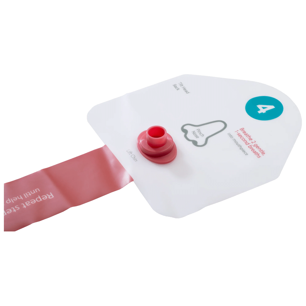 Made with a non-woven fabric that is eco-friendly, this is more than a CPR mask. It provides visual prompts to guide the rescuer through the AHA-recommended steps of CPR. To ensure sanitary protection, the non-woven chest overlay includes a mouth-to-mouth, one-way breathing barrier, and face shield.