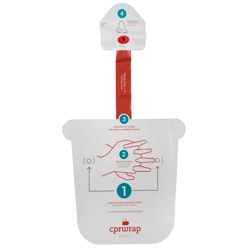 CPRWrap® Aid is an innovative tool that helps make CPR easier. In an emergency, just remove the product from its quick-open package, lay it on the chest of the sudden cardiac arrest (SCA) victim, and follow the simple instructions.