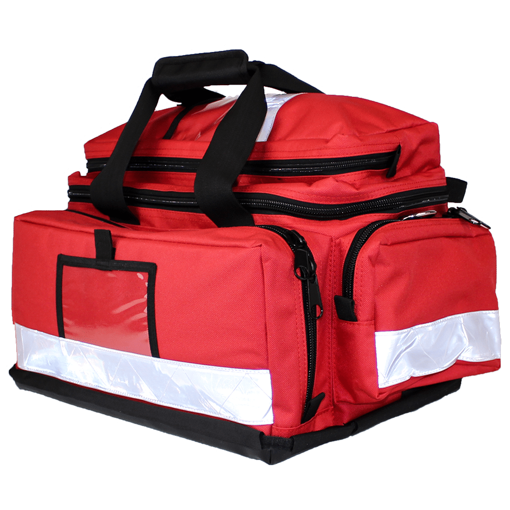 The bag is a vibrant red colour and has reflective strips, the kit offers high visibility in any situation. The softpack design and leather base combine portability and durability, making it ideal for construction sites, vehicles, and professional settings.