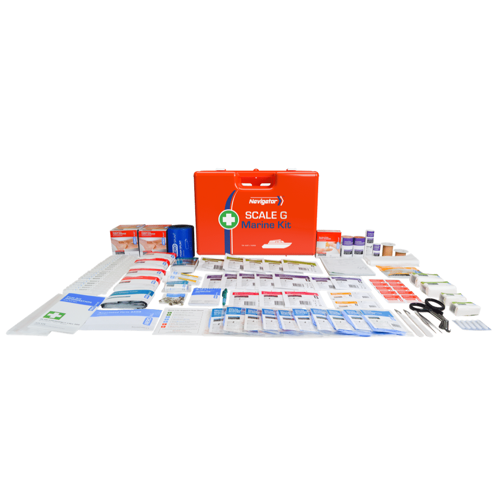 The Scale G Marine kit complies with the Australian NSCV (National Standard for Commercial Vessels) requirements for the indicated Class of vessel. The cases have been developed specifically for marine environments and are UV resistant, and have a water-resistant seal, with a full wall mount bracket for secure mounting. Vessel Class – This scale G Marine first aid kit meets the requirements under the NSCV for the vessel Classes: 1D (with Unberthed passengers), 1E (with Unberthed passengers), 2D, 2E, 3D and 3E.*