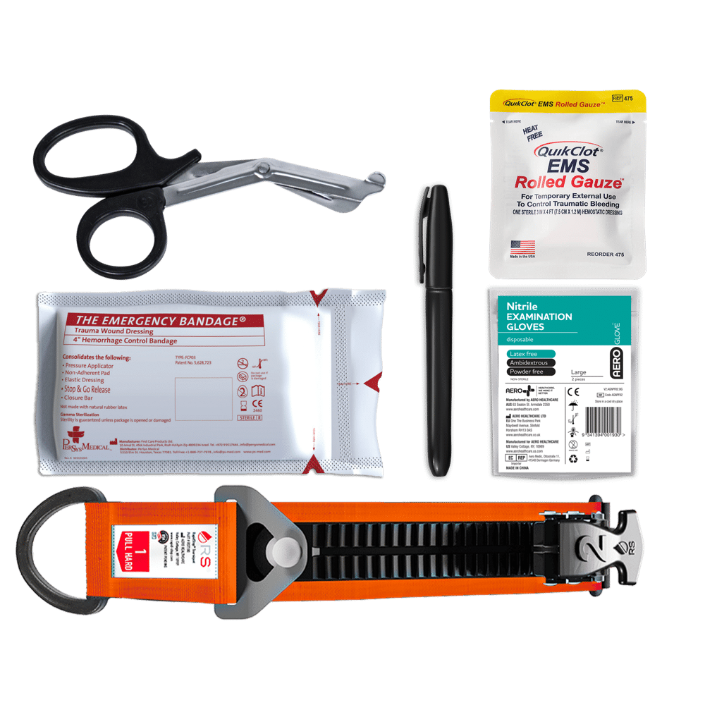 The RapidStop Bleeding Control Kit is designed for quick and effective control of mass haemorrhaging. Including the popular RapidStop Tourniquet, this haemostatic trauma solution offers military grade ruggedness, all age suitability, superior single-handed application and the fastest average occlusion time. Achieving full occlusion in the shortest time possible is critical. This kit is designed to provide treatment options with efficiency and effectiveness in mind.